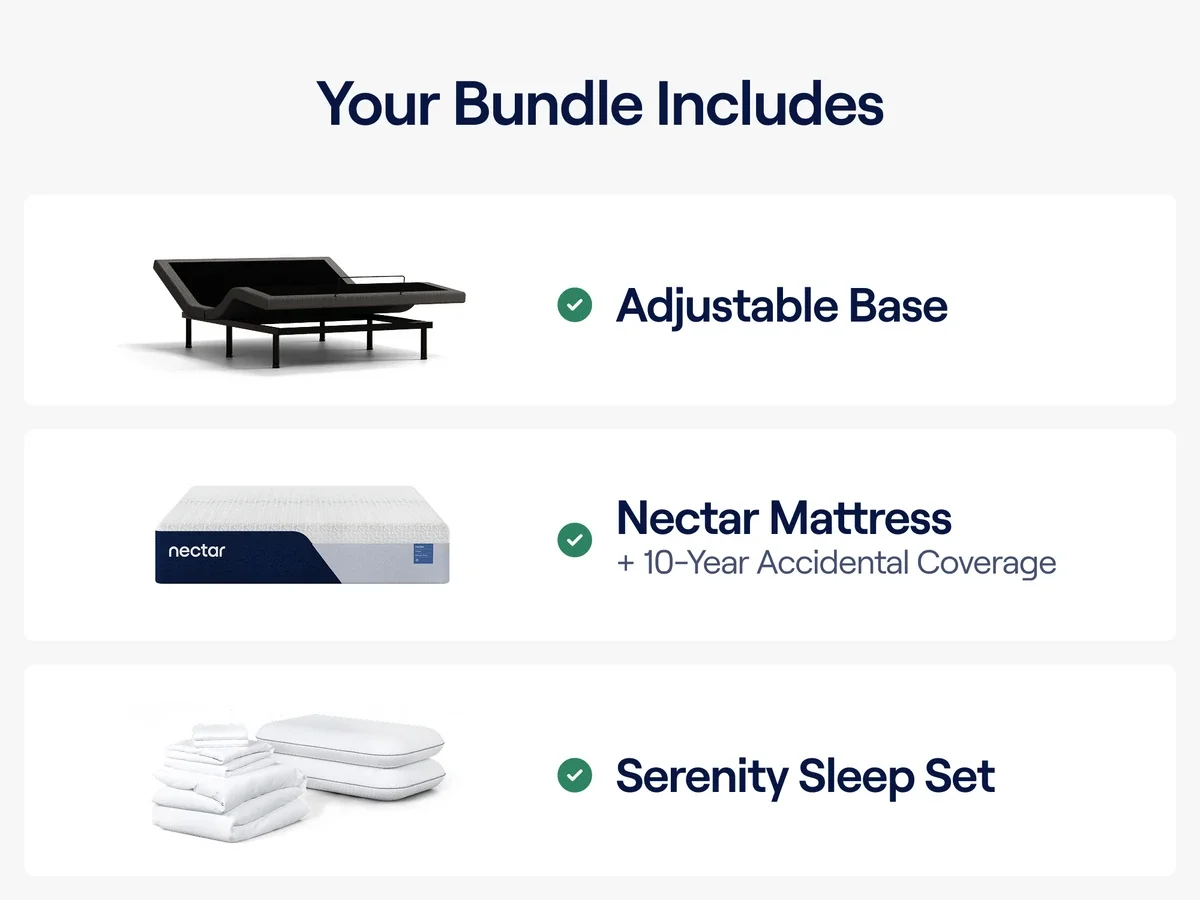 Upgrade your sleep setup with the Adjustable Comfort Premier Bundle. The mattress set includes: